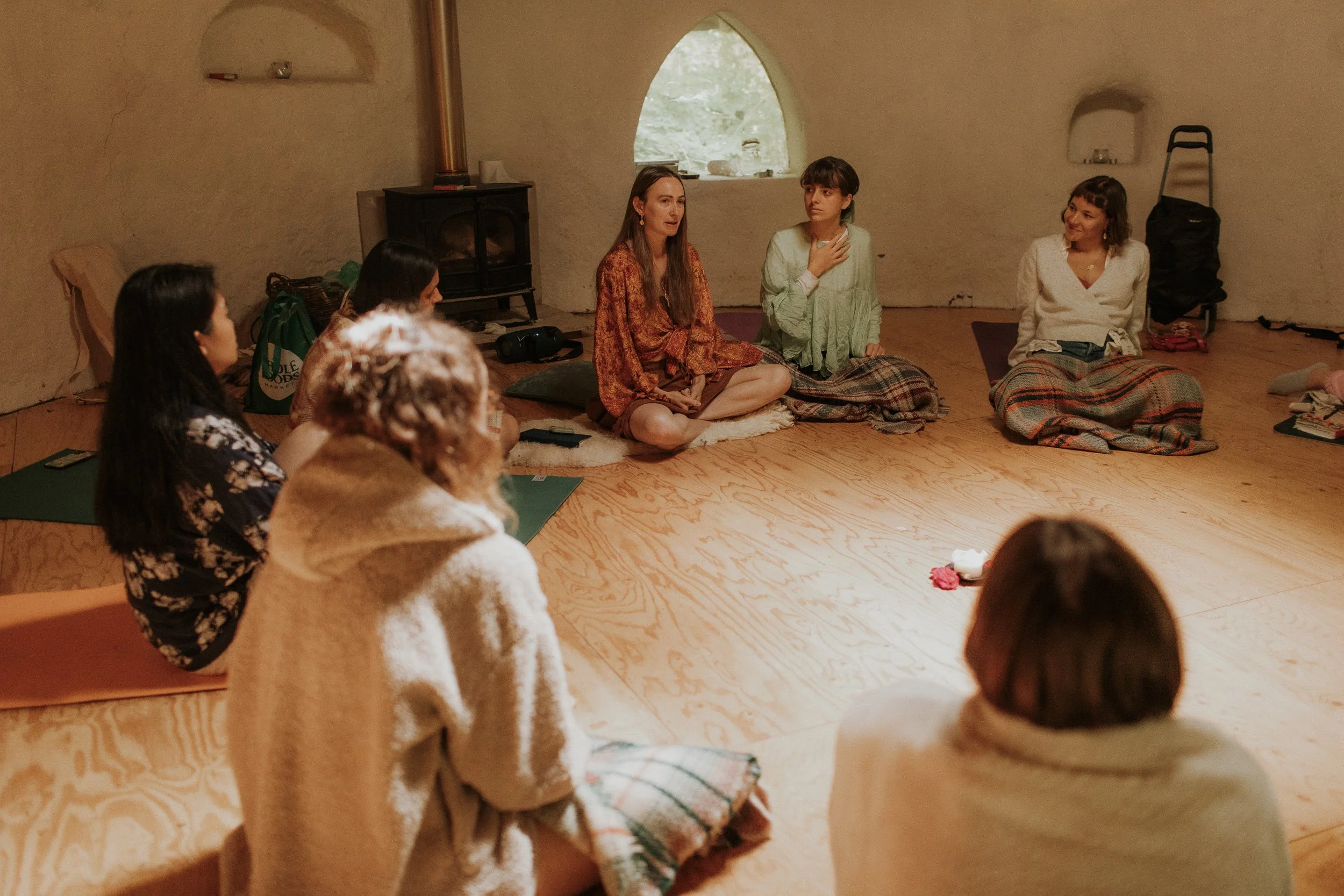 For 4 days you will live in a magical, exclusive forest called Campwell Woods: a handcrafted eco-village nestled in a wild wooded valley just outside Bath. With cosy log cabins, yurts, a cob roundhouse and wood burning stoves, plus a wood-fired sauna and beautiful off-grid facilities, it’s a secluded, nature-immersed sanctuary that on our last retreat women named “the wild fairy forest where time stands still.”